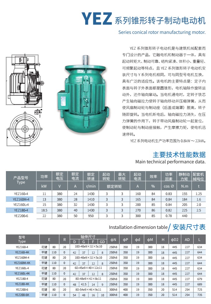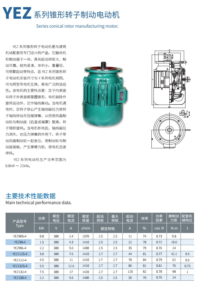 YEZ系列錐形轉(zhuǎn)子制動(dòng)電動(dòng)機(jī)